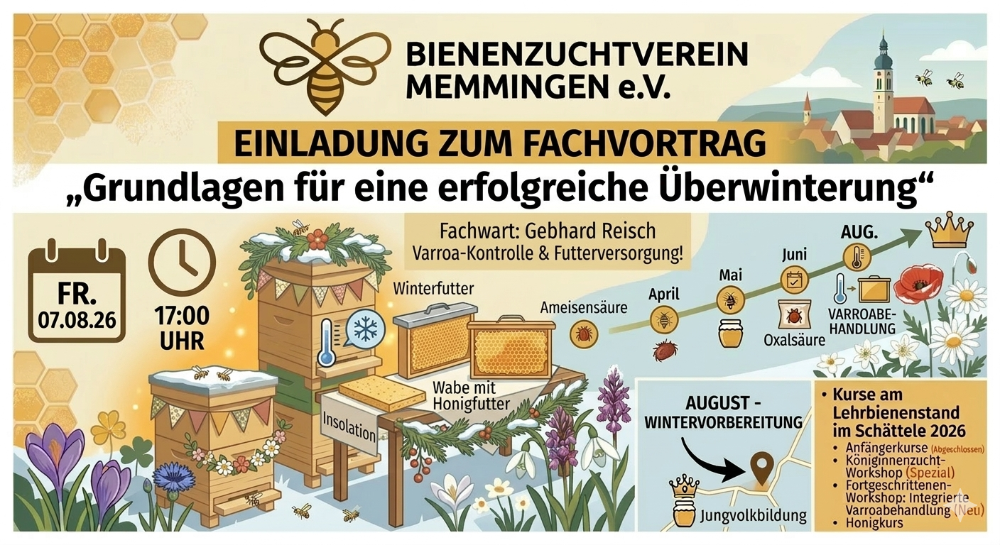 Der Bienenzuchtverein Memmingen e.V. lädt Sie herzlich ein, sich optimal auf die kalte Jahreszeit vorzubereiten. Wir freuen uns sehr, dass unser Fachwart Gebhard Reisch sein fundiertes Praxiswissen mit uns teilt.